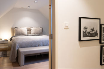 Aanvankelijk stond hier een oude, wankele schuur, Gerda en Siegfried lieten een elegante nieuwbouw optrekken die omarmd wordt een groene oase en perfect integreert in het geheel. Zelf wonen ze aan ‘de overkant’, op hetzelfde domein, dus word je persoonlijk onthaald en kun je ook je auto voor je vakantiedeur parkeren, ook een laadpaal is voorzien.